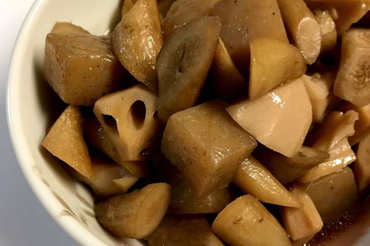 ホットクック 蓮根 牛蒡 蒟蒻の甘辛煮 レシピ 作り方 By ゆいのまま クックパッド
