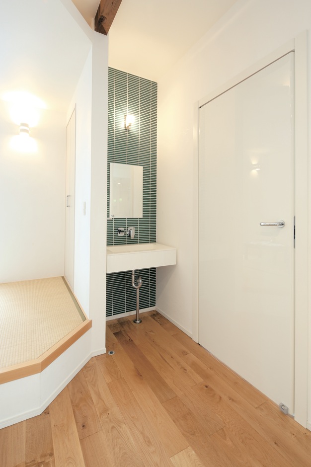 豊川市 上野の家 リビングに繋がる洗面台 重量木骨の家 選ばれた工務店と建てる木造注文住宅