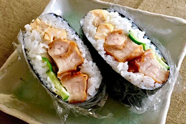 おにぎらず たまご 唐揚げ編 レシピ 作り方 By Cooking Mama0419 楽天レシピ