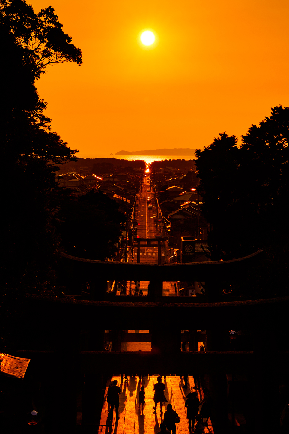 2015 宮地嶽神社の参道の向こうにパワースポット目指し夕日が沈む 福津市宮地嶽神社 おうどうもん Oudoumon People Of Hakata 美しい風景 風景 神社