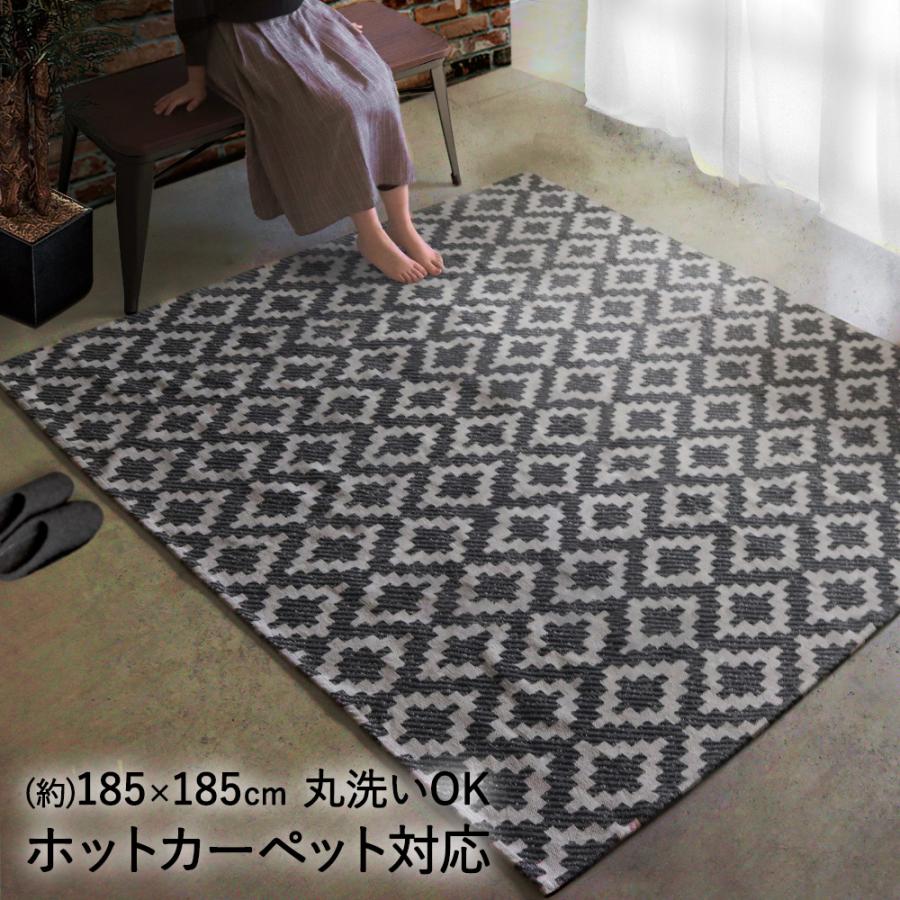 洗える ラグマット 185x185cm ブラック ラグ おしゃれ 幾何学模様 厚手 コットン 綿 マット カーペット 2畳 ラグカーペット フローリング 傷防止 オシャレ C419 ロイヤル通販 通販 Yahoo ショッピング