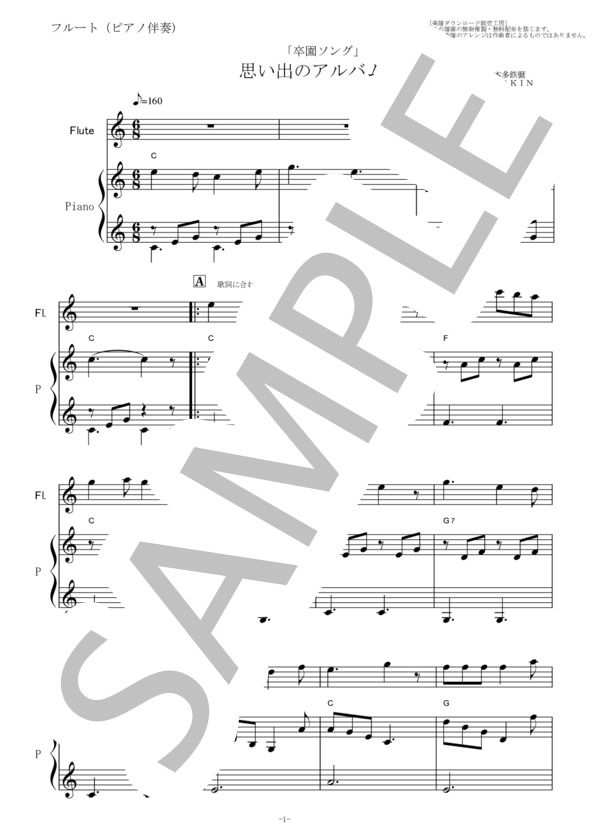 フルート楽譜 思い出のアルバム 卒園式ソング フルートピアノ伴奏 楽譜ダウンロード販