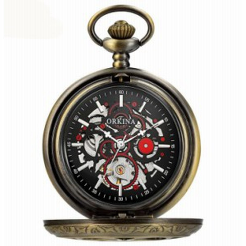ポケットウォッチ 懐中時計 手巻き スケルトン 蓋付き シースルー Pwa005 メンズ懐中時計 Myway2019