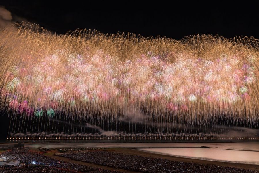 幅1 5kmに渡って広がる大花火 尺玉100発同時打ち や海上で広がる海中空花火など迫力満点の花火大会 ぎおん柏崎まつり海の大花火大会 を見てきました Gigazine