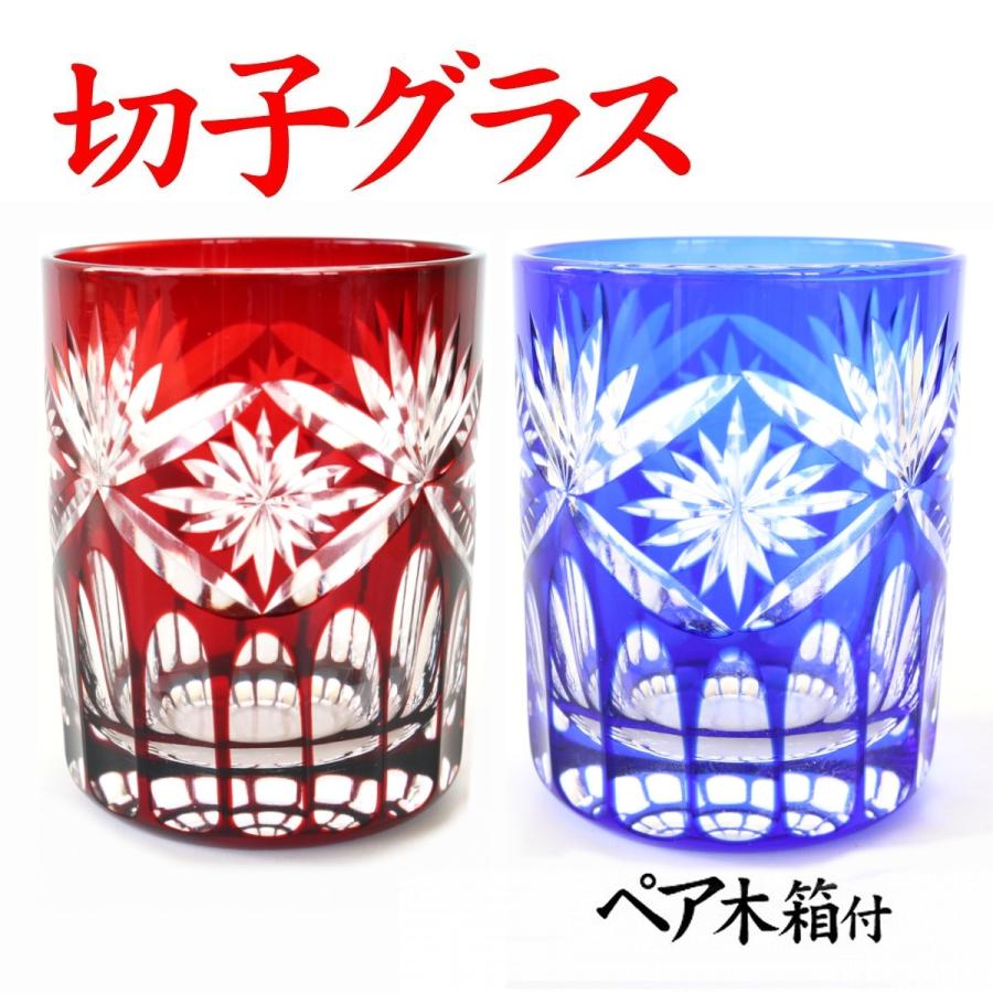 結婚祝い 周年記念 記念品 お祝い 御礼 退職記念 誕生日 江戸切子 ペア ロックグラス ウイスキーグラス 焼酎グラス プレゼント カガミクリスタル Kagami 赤 青 Kagamiオンラインショップ 通販 Paypayモール