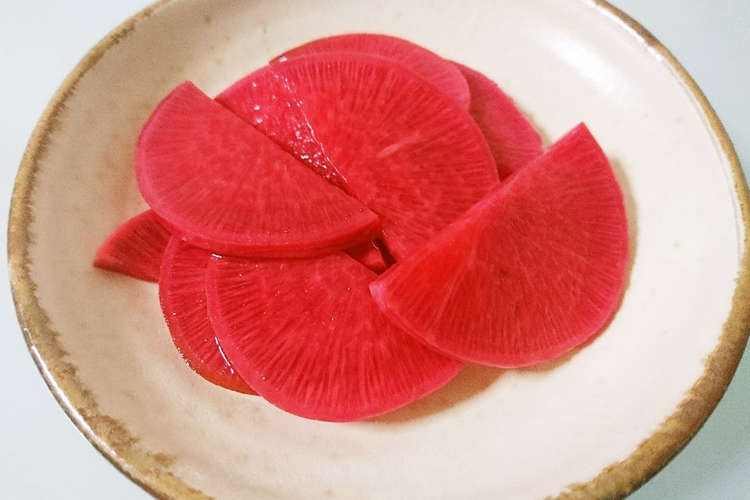 色鮮やか 赤大根の甘酢漬け レシピ 作り方 By めぐみの郷 クックパッド