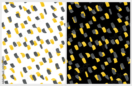 Set Of 2 Cute Abstract Brush Lines Vector Pattern White Yellow Black And Gray Irregular Hand Drawn Stripes On A White And Black Backgrounds Funny Watercolor Style Vector Layouts Buy This