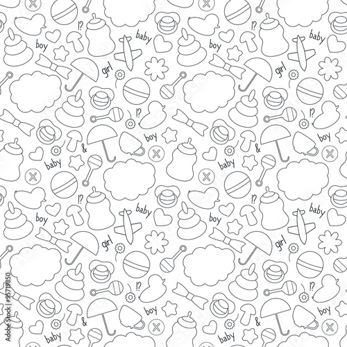 Cute Hand Drawn Baby Seamless Pattern Background In Black And Royalty Free Cliparts Vectors And Stock Illustration Image 48418064