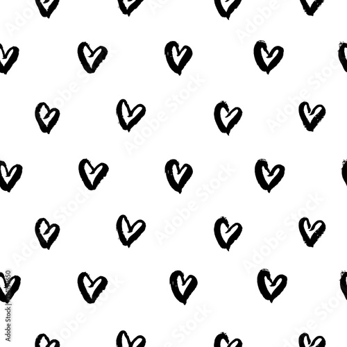 Seamless Pattern With Hand Drawn Ink Black Hearts Cute Black And White Background Ink Brush Painted Scribble Hearts On White Background Vector Illustration Buy This Stock Vector And Explore Similar Vectors