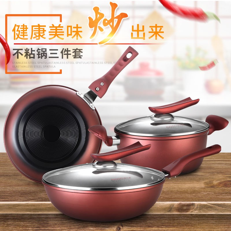 Bang Shini Set Pots And Pans Cookware Non Stick Cookware Cooking Pot Steamer Induction Cooker Three Piece Cookware Set Combination Shopee Malaysia