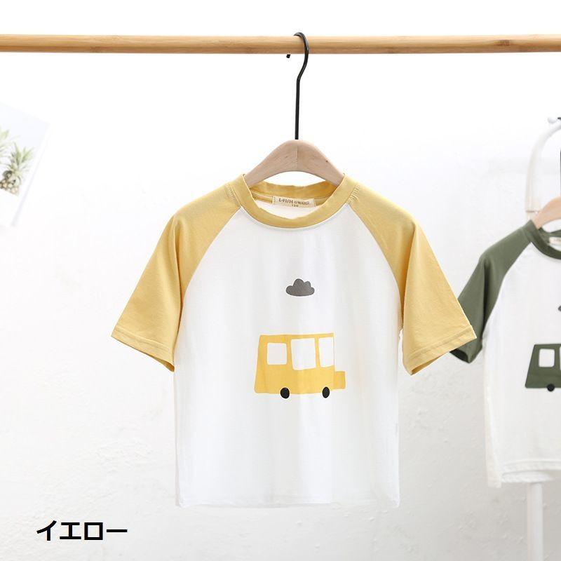 半袖tシャツ カットソー キッズ ジュニア 子供 男の子 女の子 イラスト プリント クルマ 車 くるま バイカラー イエロー グリーン ブルー ラウ プラスナオ Paypayモール店 通販 Paypayモール